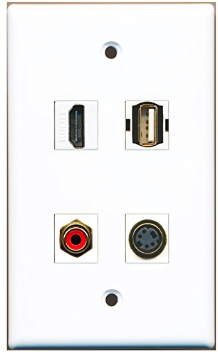 RiteAV - 1 Port HDMI 1 Port RCA Red 1 Port USB A-A 1 Port S-Video Wall Plate
