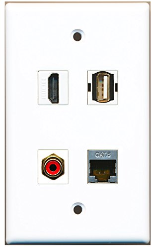 RiteAV - 1 Port HDMI 1 Port RCA Red 1 Port USB A-A 1 Port Shielded Cat6 Ethernet Wall Plate