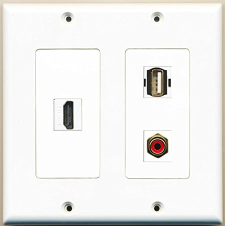 RiteAV - 1 Port HDMI 1 Port RCA Red 1 Port USB A-A - 2 Gang Wall Plate