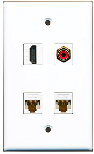 RiteAV - 1 Port HDMI 1 Port RCA Red 2 Port Cat6 Ethernet White Wall Plate
