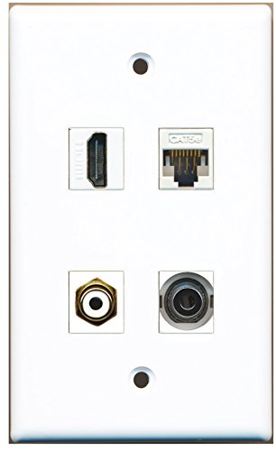 RiteAV - 1 Port HDMI 1 Port RCA White 1 Port 3.5mm 1 Port Cat5e Ethernet White Wall Plate