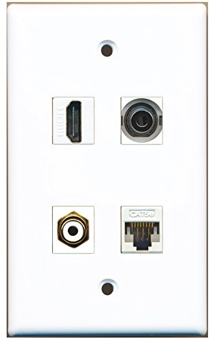 RiteAV - 1 Port HDMI 1 Port RCA White 1 Port 3.5mm 1 Port Cat5e Ethernet White Wall Plate