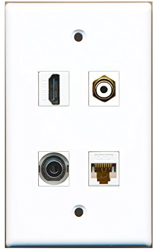 RiteAV - 1 Port HDMI 1 Port RCA White 1 Port 3.5mm 1 Port Cat6 Ethernet White Wall Plate