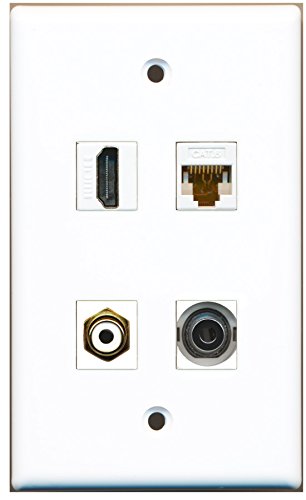 RiteAV - 1 Port HDMI 1 Port RCA White 1 Port 3.5mm 1 Port Cat6 Ethernet White Wall Plate