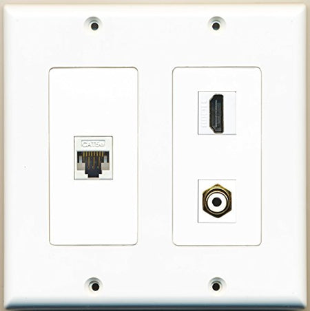 RiteAV - 1 Port HDMI 1 Port RCA White 1 Port Cat5e Ethernet White - 2 Gang Wall Plate