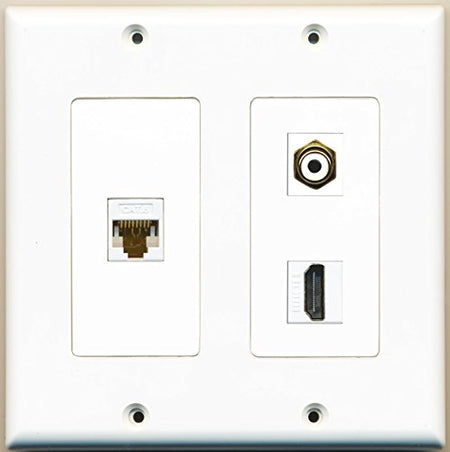 RiteAV - 1 Port HDMI 1 Port RCA White 1 Port Cat6 Ethernet White - 2 Gang Wall Plate