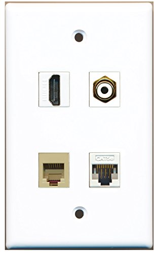 RiteAV - 1 Port HDMI 1 Port RCA White 1 Port Phone RJ11 RJ12 Beige 1 Port Cat5e Ethernet White Wall Plate
