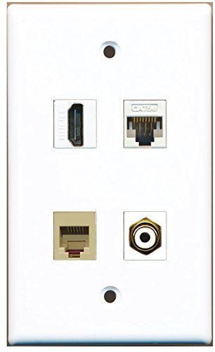 RiteAV - 1 Port HDMI 1 Port RCA White 1 Port Phone RJ11 RJ12 Beige 1 Port Cat5e Ethernet White Wall Plate