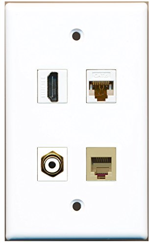 RiteAV - 1 Port HDMI 1 Port RCA White 1 Port Phone RJ11 RJ12 Beige 1 Port Cat6 Ethernet White Wall Plate