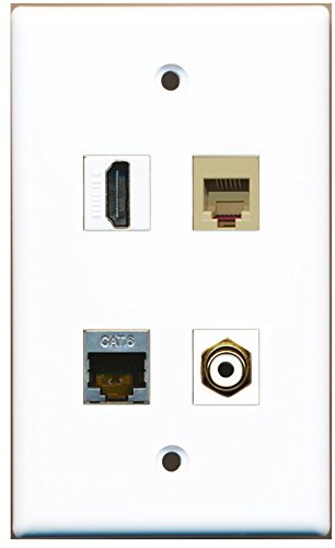 RiteAV - 1 Port HDMI 1 Port RCA White 1 Port Phone RJ11 RJ12 Beige 1 Port Shielded Cat6 Ethernet Wall Plate