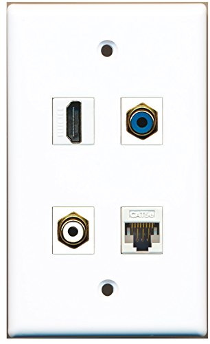 RiteAV - 1 Port HDMI 1 Port RCA White 1 Port RCA Blue 1 Port Cat5e Ethernet White Wall Plate