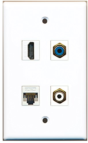 RiteAV - 1 Port HDMI 1 Port RCA White 1 Port RCA Blue 1 Port Cat5e Ethernet White Wall Plate