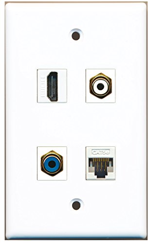 RiteAV - 1 Port HDMI 1 Port RCA White 1 Port RCA Blue 1 Port Cat5e Ethernet White Wall Plate