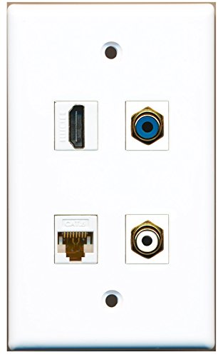 RiteAV - 1 Port HDMI 1 Port RCA White 1 Port RCA Blue 1 Port Cat6 Ethernet White Wall Plate