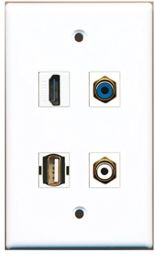 RiteAV - 1 Port HDMI 1 Port RCA White 1 Port RCA Blue 1 Port USB A-A Wall Plate