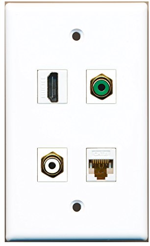 RiteAV - 1 Port HDMI 1 Port RCA White 1 Port RCA Green 1 Port Cat6 Ethernet White Wall Plate