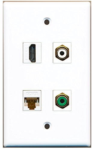 RiteAV - 1 Port HDMI 1 Port RCA White 1 Port RCA Green 1 Port Cat6 Ethernet White Wall Plate
