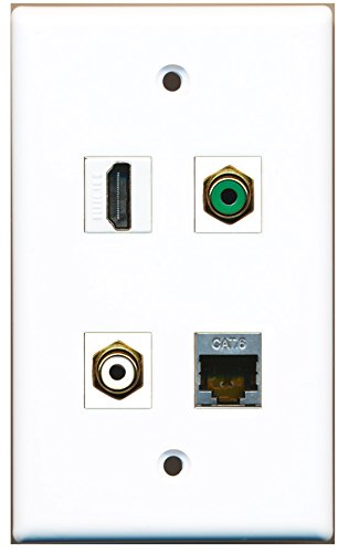 RiteAV - 1 Port HDMI 1 Port RCA White 1 Port RCA Green 1 Port Shielded Cat6 Ethernet Wall Plate