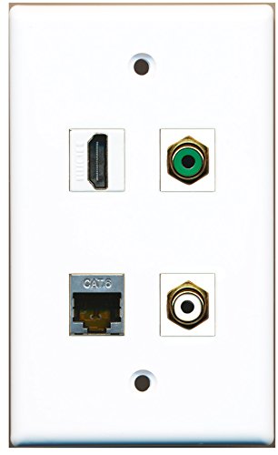 RiteAV - 1 Port HDMI 1 Port RCA White 1 Port RCA Green 1 Port Shielded Cat6 Ethernet Wall Plate