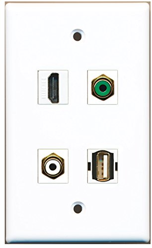 RiteAV - 1 Port HDMI 1 Port RCA White 1 Port RCA Green 1 Port USB A-A Wall Plate