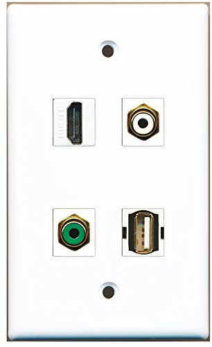RiteAV - 1 Port HDMI 1 Port RCA White 1 Port RCA Green 1 Port USB A-A Wall Plate