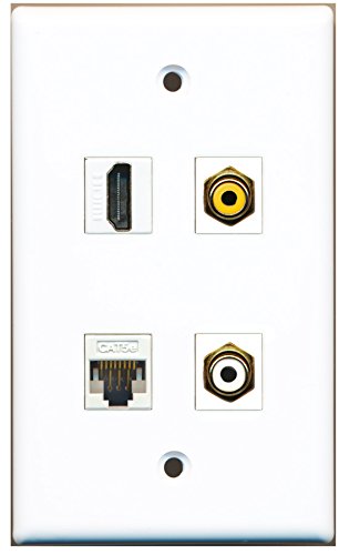 RiteAV - 1 Port HDMI 1 Port RCA White 1 Port RCA Yellow 1 Port Cat5e Ethernet White Wall Plate