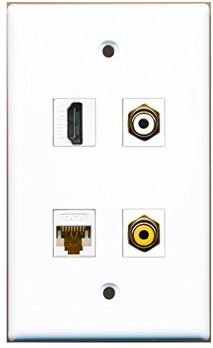 RiteAV - 1 Port HDMI 1 Port RCA White 1 Port RCA Yellow 1 Port Cat6 Ethernet White Wall Plate