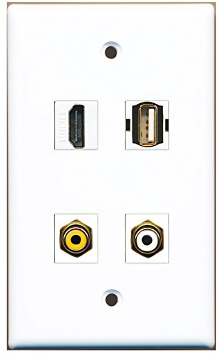 RiteAV - 1 Port HDMI 1 Port RCA White 1 Port RCA Yellow 1 Port USB A-A Wall Plate
