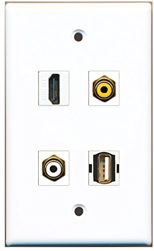 RiteAV - 1 Port HDMI 1 Port RCA White 1 Port RCA Yellow 1 Port USB A-A Wall Plate