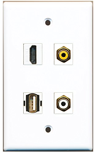 RiteAV - 1 Port HDMI 1 Port RCA White 1 Port RCA Yellow 1 Port USB A-A Wall Plate