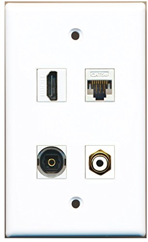 RiteAV - 1 Port HDMI 1 Port RCA White 1 Port Toslink Digital Audio 1 Port Cat5e Ethernet White Wall Plate