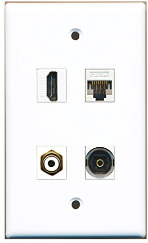 RiteAV - 1 Port HDMI 1 Port RCA White 1 Port Toslink 1 Port Cat5e Ethernet White Wall Plate