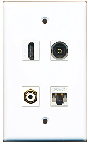 RiteAV - 1 Port HDMI 1 Port RCA White 1 Port Toslink Digital Audio 1 Port Cat5e Ethernet White Wall Plate