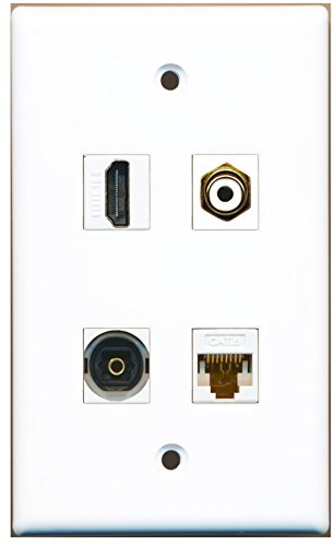 RiteAV - 1 Port HDMI 1 Port RCA White 1 Port Toslink 1 Port Cat6 Ethernet White Wall Plate