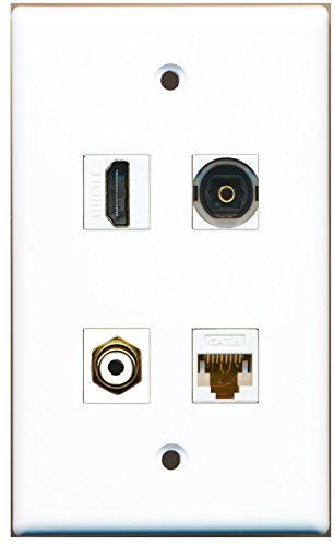 RiteAV - 1 Port HDMI 1 Port RCA White 1 Port Toslink Digital Audio 1 Port Cat6 Ethernet White Wall Plate