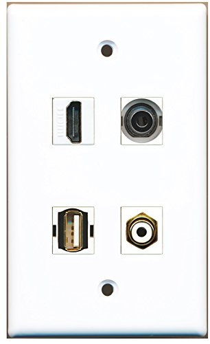 RiteAV - 1 Port HDMI 1 Port RCA White 1 Port USB A-A 1 Port 3.5mm Wall Plate