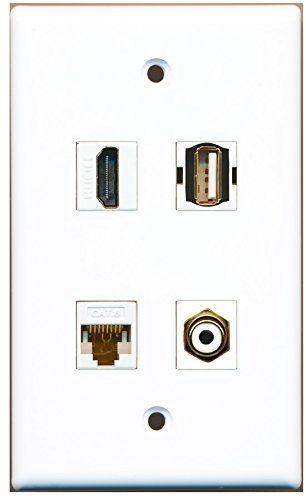 RiteAV - 1 Port HDMI 1 Port RCA White 1 Port USB A-A 1 Port Cat6 Ethernet White Wall Plate