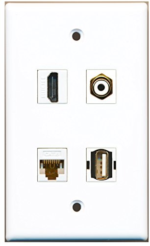 RiteAV - 1 Port HDMI 1 Port RCA White 1 Port USB A-A 1 Port Cat6 Ethernet White Wall Plate