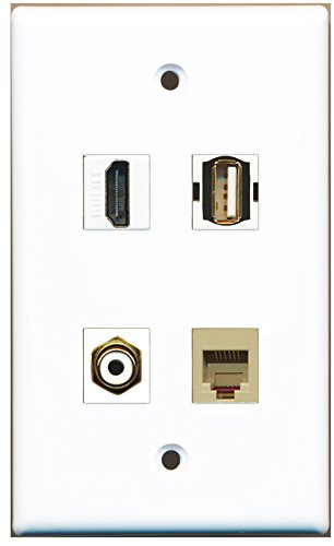 RiteAV - 1 Port HDMI 1 Port RCA White 1 Port USB A-A 1 Port Phone RJ11 RJ12 Beige Wall Plate