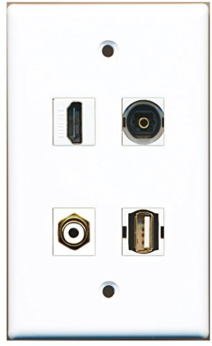 RiteAV - 1 Port HDMI 1 Port RCA White 1 Port USB A-A 1 Port Toslink Wall Plate