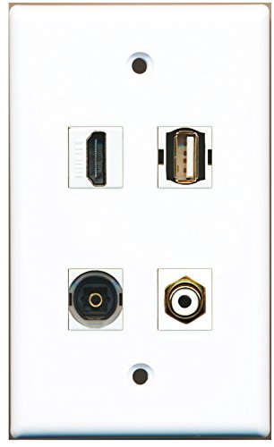 RiteAV - 1 Port HDMI 1 Port RCA White 1 Port USB A-A 1 Port Toslink Wall Plate