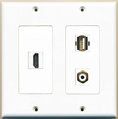 RiteAV - 1 Port HDMI 1 Port RCA White 1 Port USB A-A - 2 Gang Wall Plate