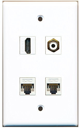 RiteAV - 1 Port HDMI 1 Port RCA White 2 Port Cat5e Ethernet White Wall Plate