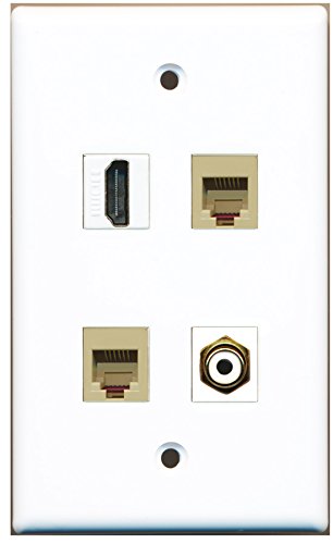 RiteAV - 1 Port HDMI 1 Port RCA White 2 Port Phone RJ11 RJ12 Beige Wall Plate