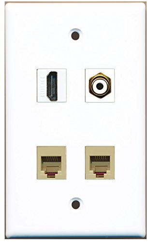 RiteAV - 1 Port HDMI 1 Port RCA White 2 Port Phone RJ11 RJ12 Beige Wall Plate