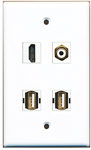 RiteAV - 1 Port HDMI 1 Port RCA White 2 Port USB A-A Wall Plate