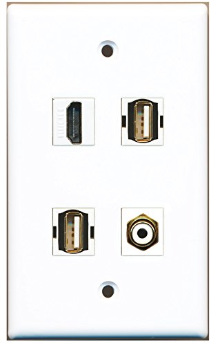 RiteAV - 1 Port HDMI 1 Port RCA White 2 Port USB A-A Wall Plate