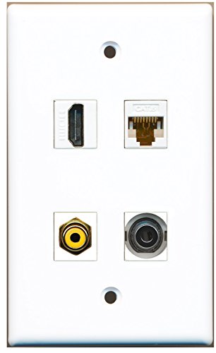 RiteAV - 1 Port HDMI 1 Port RCA Yellow 1 Port 3.5mm 1 Port Cat6 Ethernet White Wall Plate
