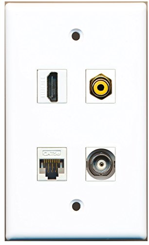 RiteAV - 1 Port HDMI 1 Port RCA Yellow 1 Port BNC 1 Port Cat5e Ethernet White Wall Plate