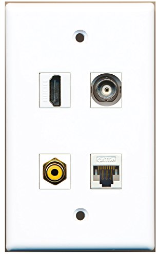RiteAV - 1 Port HDMI 1 Port RCA Yellow 1 Port BNC 1 Port Cat5e Ethernet White Wall Plate